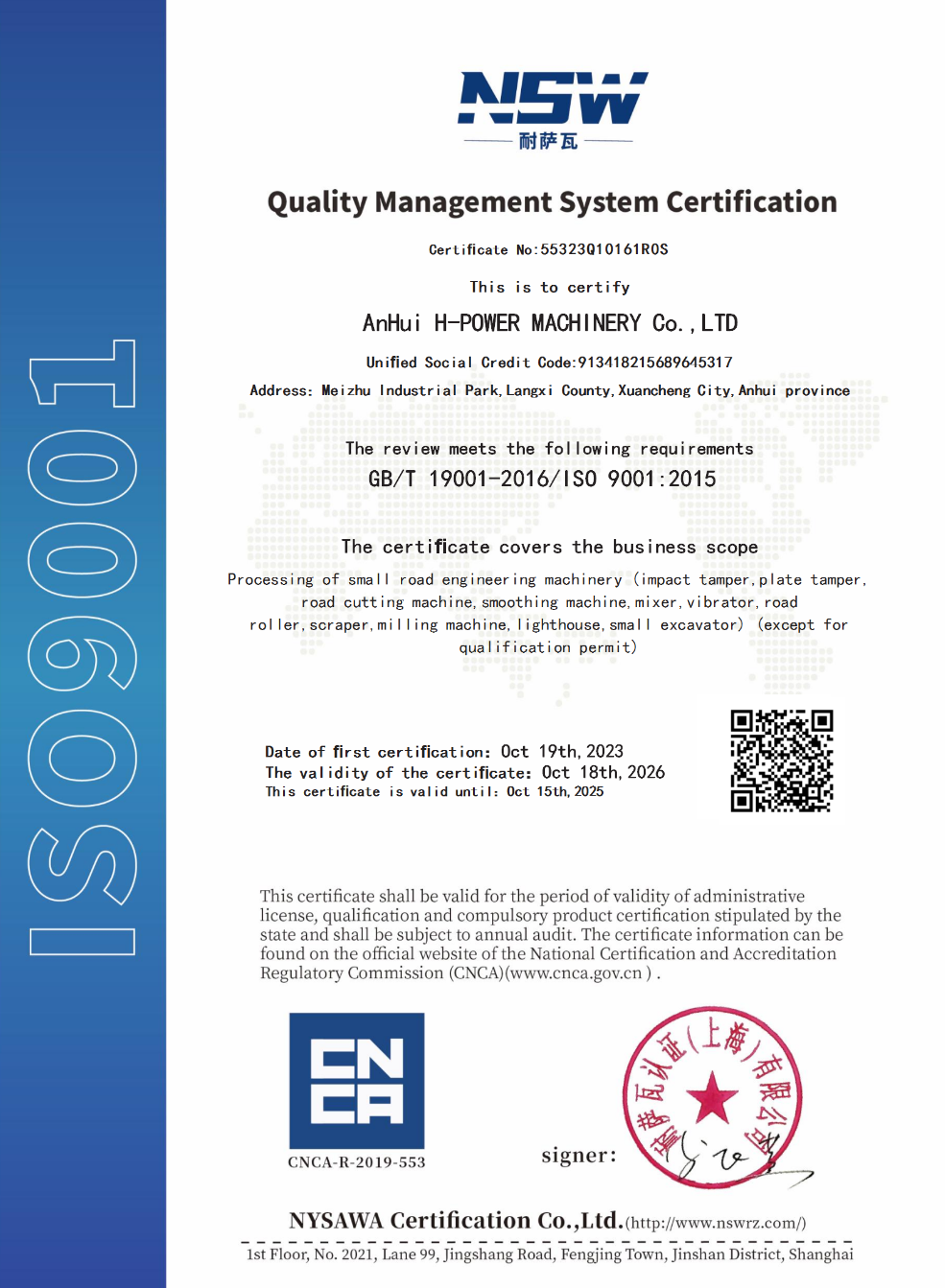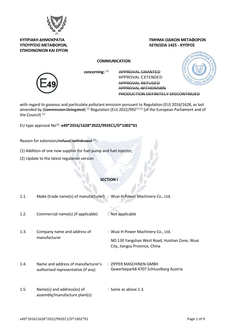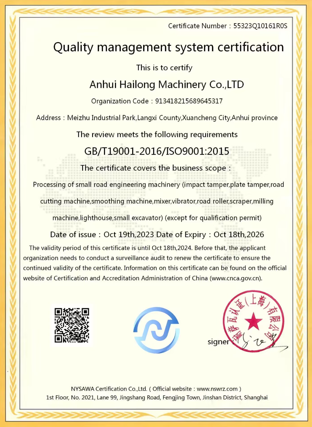 We have passed certification of ISO9001:2000 quality management system. Our products of generator sets , construction machines have been certificated by EPA, CARB,2004/26/EC, and CE. It enables the selling in different markets expediently and simply.