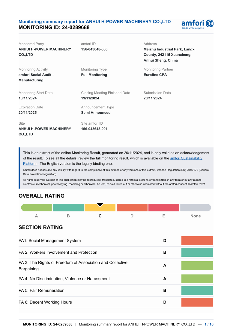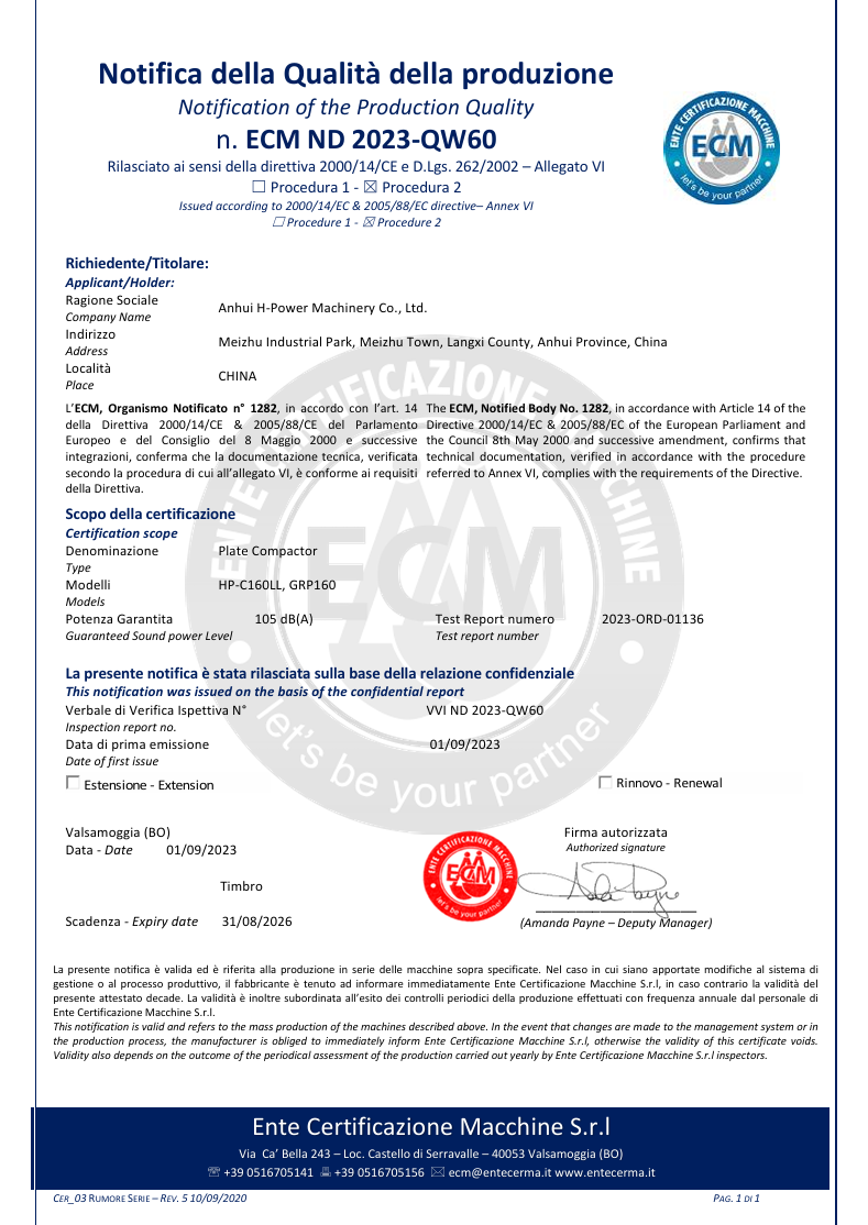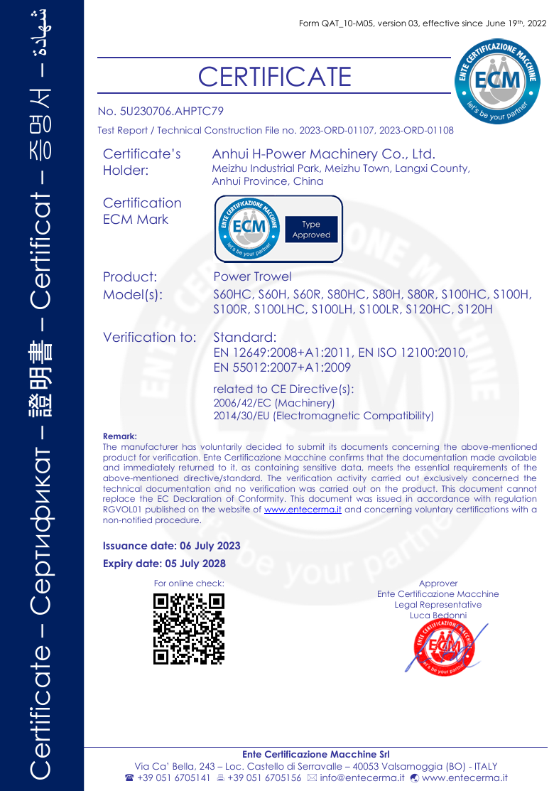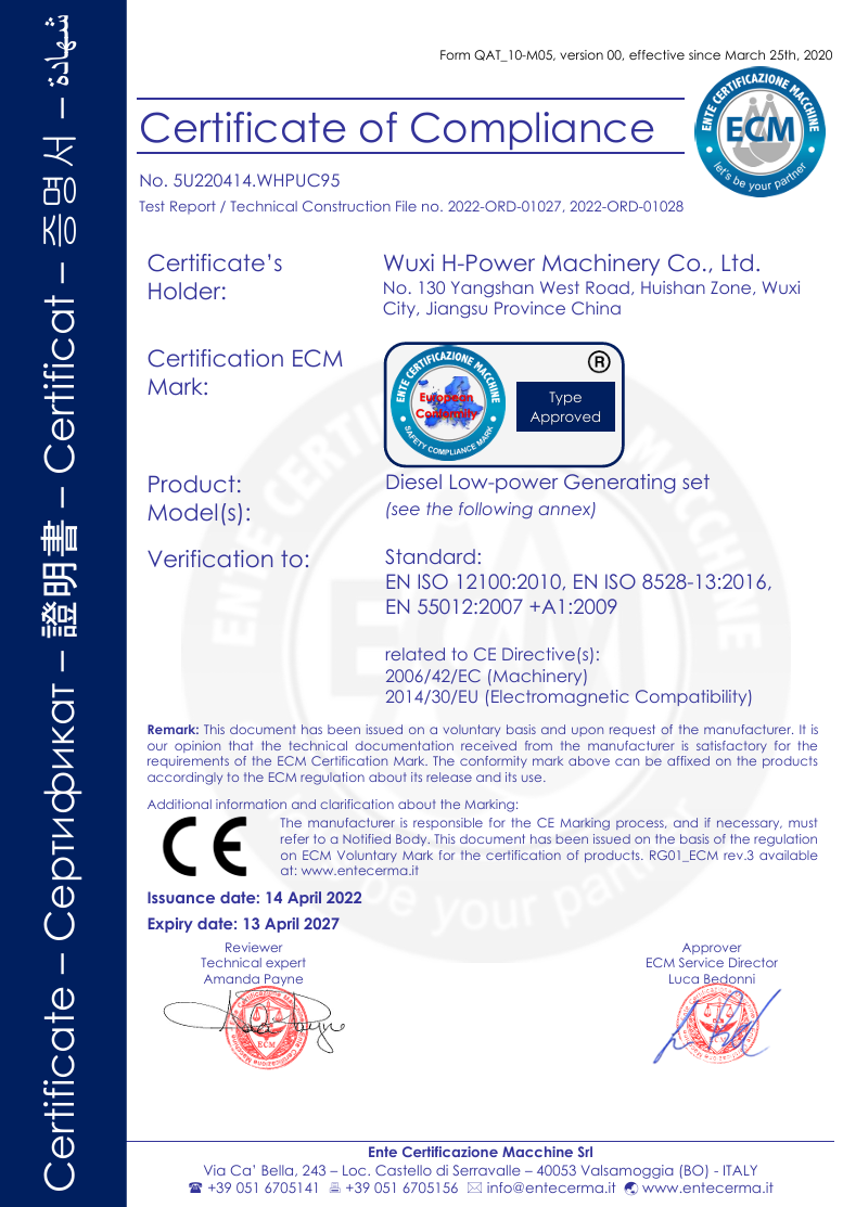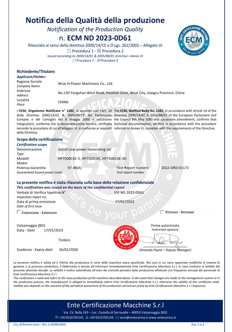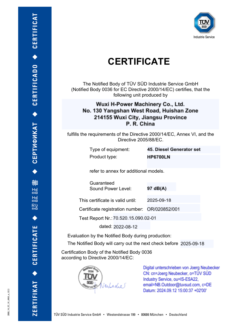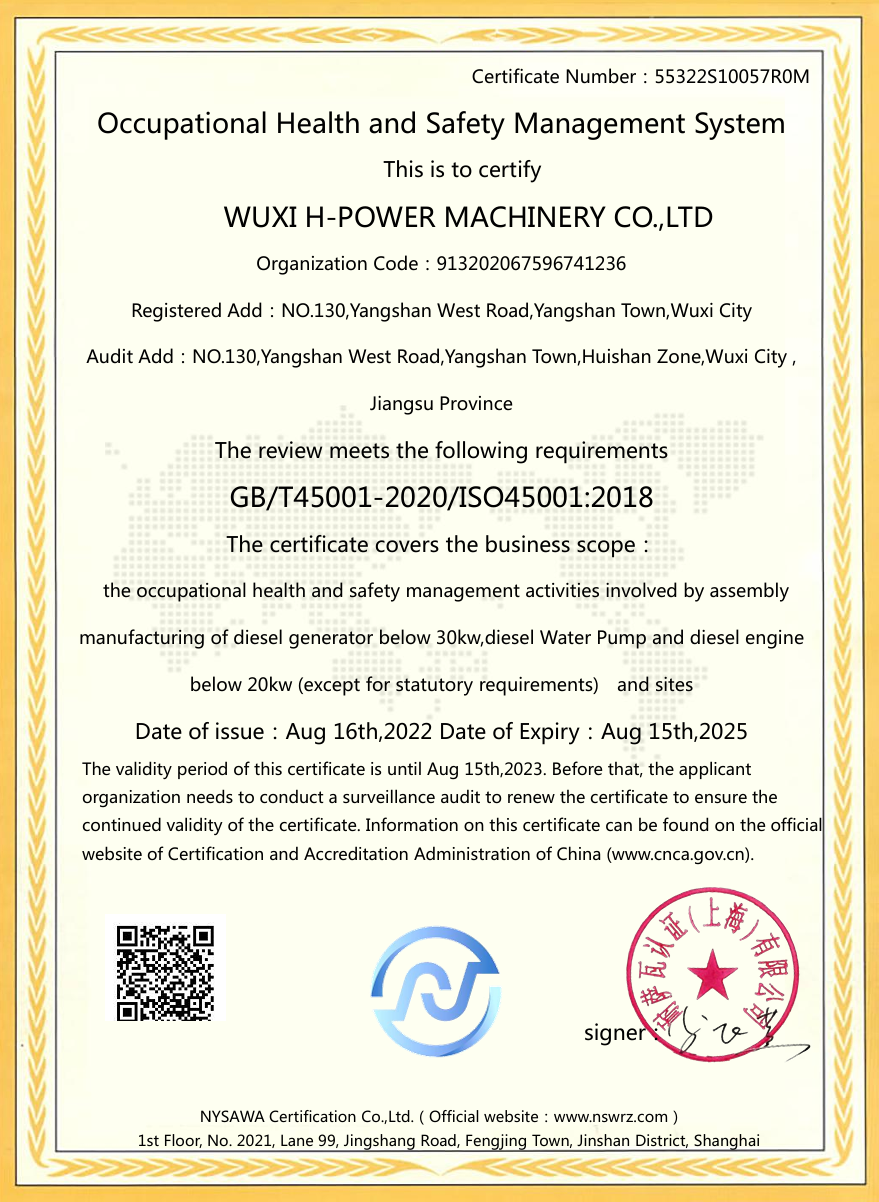 We have passed certification of ISO9001:2000 quality management system. Our products of generator sets , construction machines have been certificated by EPA, CARB,2004/26/EC, and CE. It enables the selling in different markets expediently and simply.